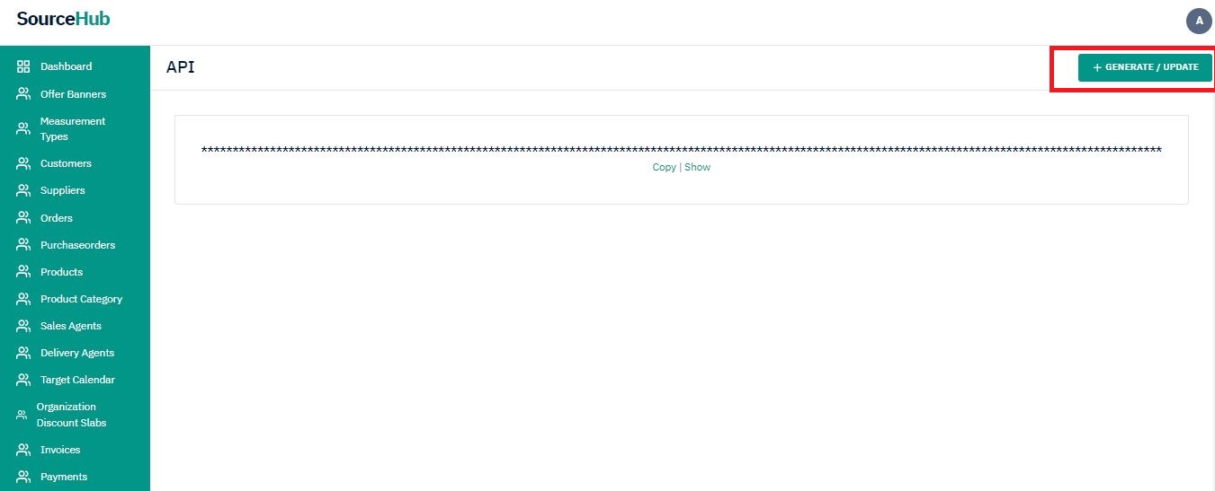 To generate new API token or update your token, click on GENERATE/UPDATE button.